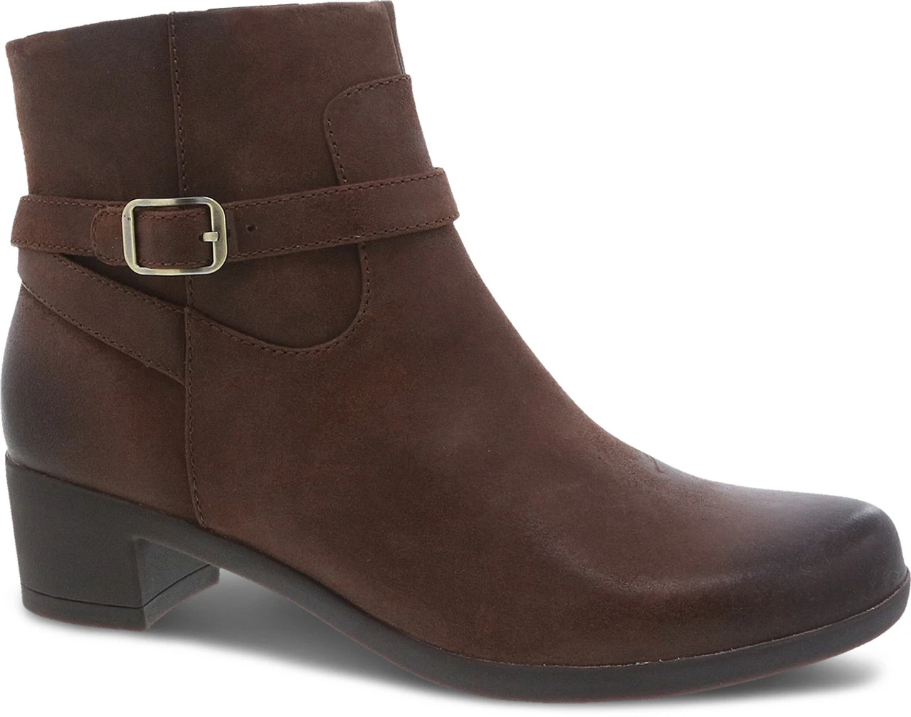 Englin’s Fine Footwear presents the women’s ‘Cagney’ from Dansko. The Cagney is heeled boot with a straight topline and a buckle strap, giving you a modern look. Perfect with a dress or a pair of skinny jeans, the Cagney features burnished suede uppers treated with 3M Scotchgard for stain resistance, leather uppers, lined with a combination of chrome-free and 100% recycled textile linings, a removable footbed with Dansko Natural Arch technology, and a rubber outsole for long-lasting wear.