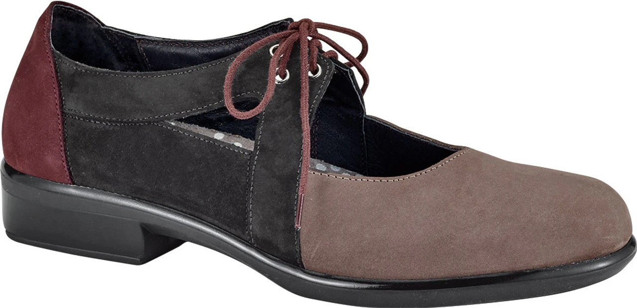 Englin’s Fine Footwear presents the women’s ‘Alisio’ from Naot. The Alisio is a charming yet durable fall shoe. With its neutral, tricolored nubuck, slip resistant sole, and securing laces, the Alisio matches with everything and is up for any autumn adventure. The Alisio also features Naot’s removable, anatomic cork & latex footbed, which is wrapped in microfiber & leather and molds to the shape of the foot with wear. The Aura Collection features a 1.5″ polyurethane sole with a metal shank which is extremely lightweight, durable & abrasive to prevent slipping. This collection uses a hand-sewn stroble construction making it strong and extremely flexible.