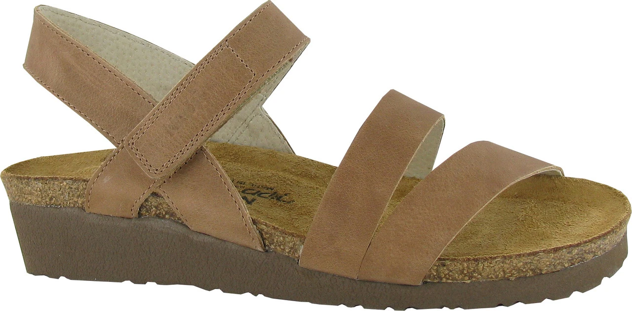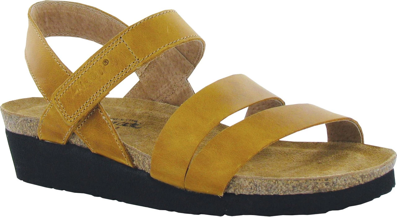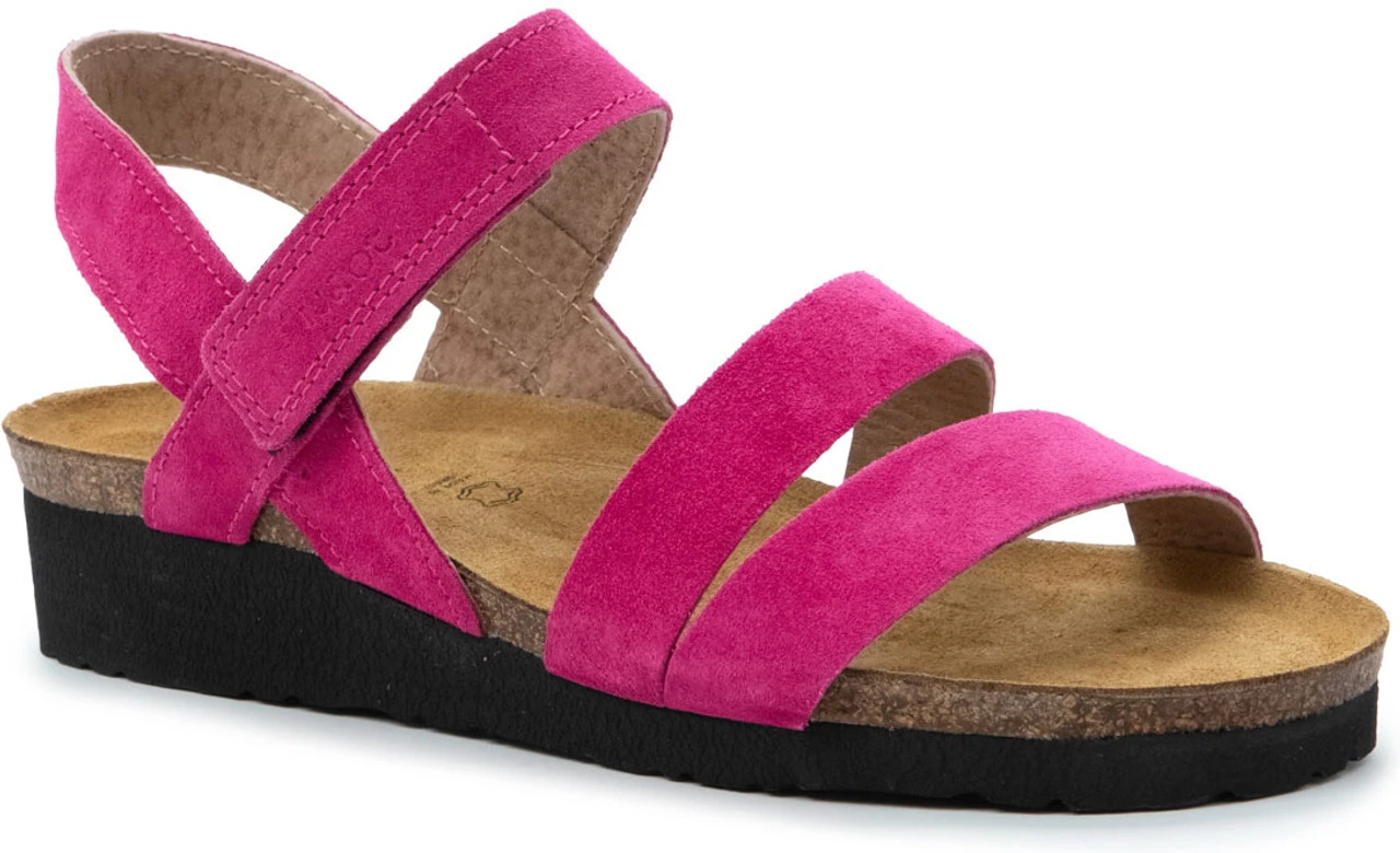 Englin’s Fine Footwear presents the women’s ‘Kayla’ from Naot. The Kayla is a three-strap sandal with a hook & loop strap at the instep and a backstrap for added stability and support. Naot’s anatomic cork & latex footbed is wrapped in a pampering suede and molds to the shape of the foot with wear. The Elegant Collection features a 1.5″ EVA sole. Narrow to medium fit.
