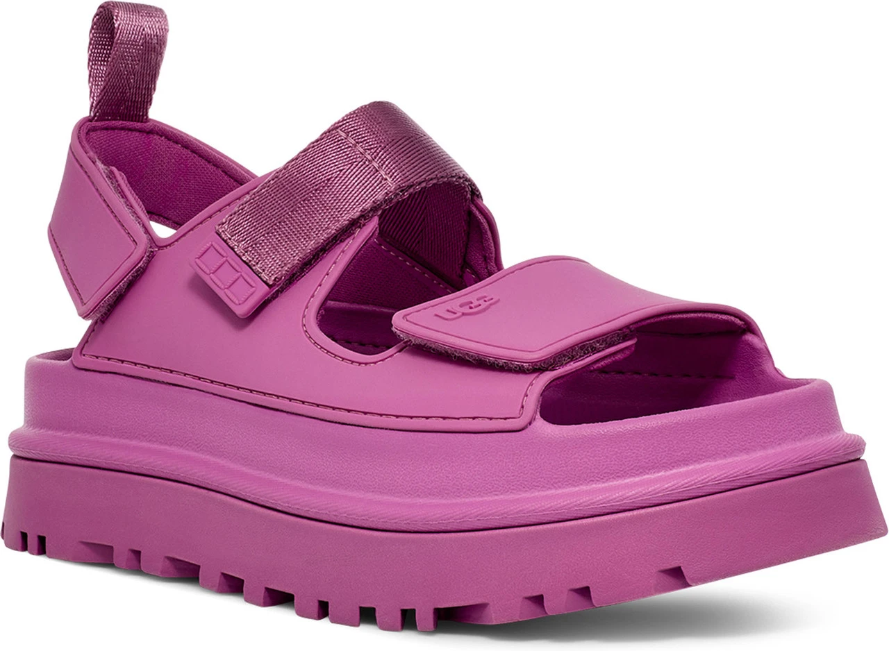 Englin’s Fine Footwear presents the women’s ‘GoldenGlow’ from UGG. Bask in the GoldenGlow. Super lightweight and ultra-comfortable, the water-friendly GoldenGlow is a fully adjustable sandal. It’s made from springy and supportive sugarcane EVA that’s ready to wear through rain and shine. Stacked on a platform with a lug sole and complete with a grippy footbed, this pair looks as dynamic as it’ll make you feel.
